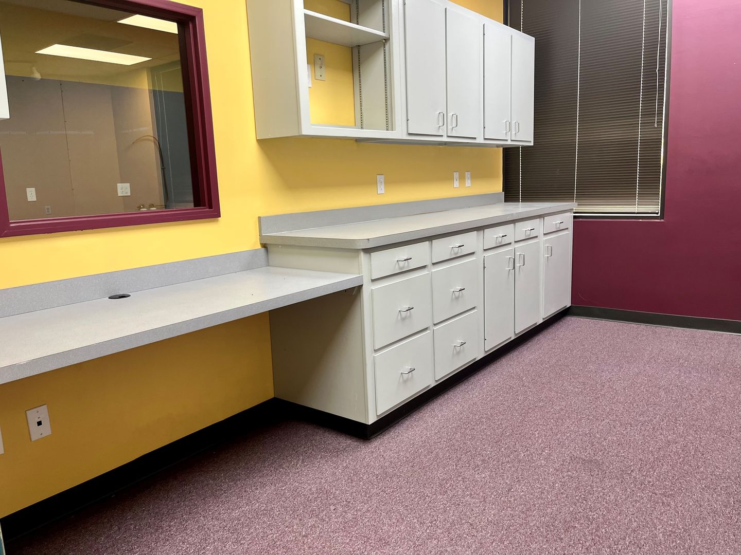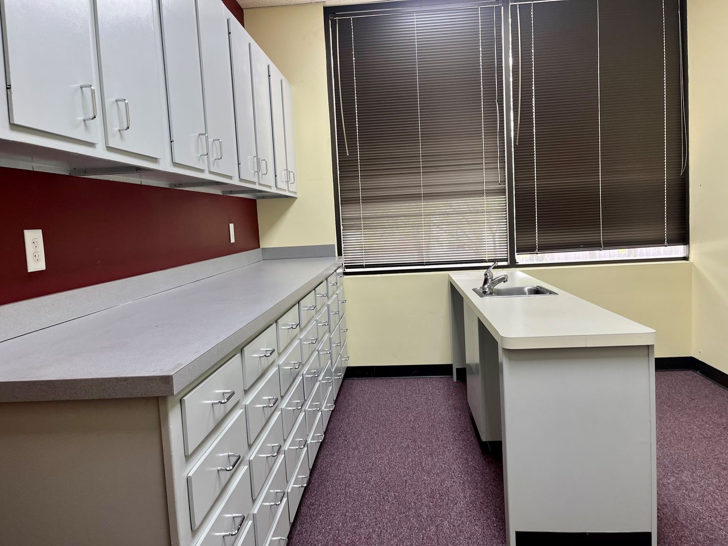 6-8 exam rooms with sinks, kitchen/breakroom, waiting room, built in admin/reception, lab room, storage